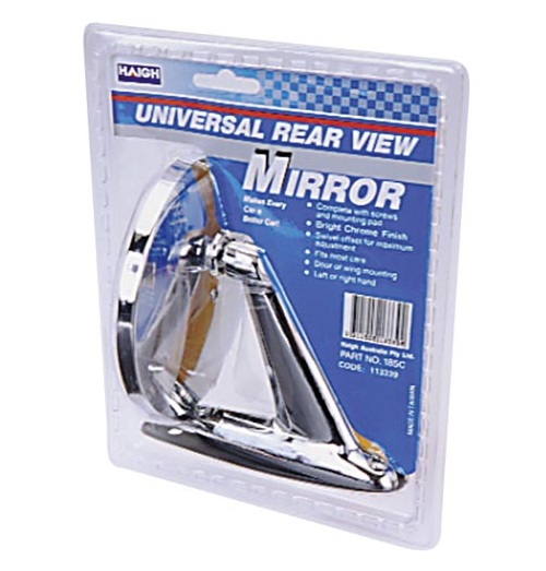 Universal Chrome Mirror. Stylish round mirror, comes with gasket and screws to fit, and fits both left or right hand side. Sold each.