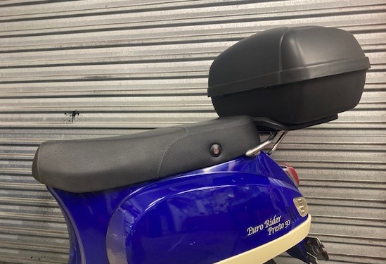 Fits on most scooters, and large enough to fit in a full face helmet or a laptop! Can easily be unlocked and removed off the scooter and taken inside, rather than emptying it all out. Pick up only from store.
